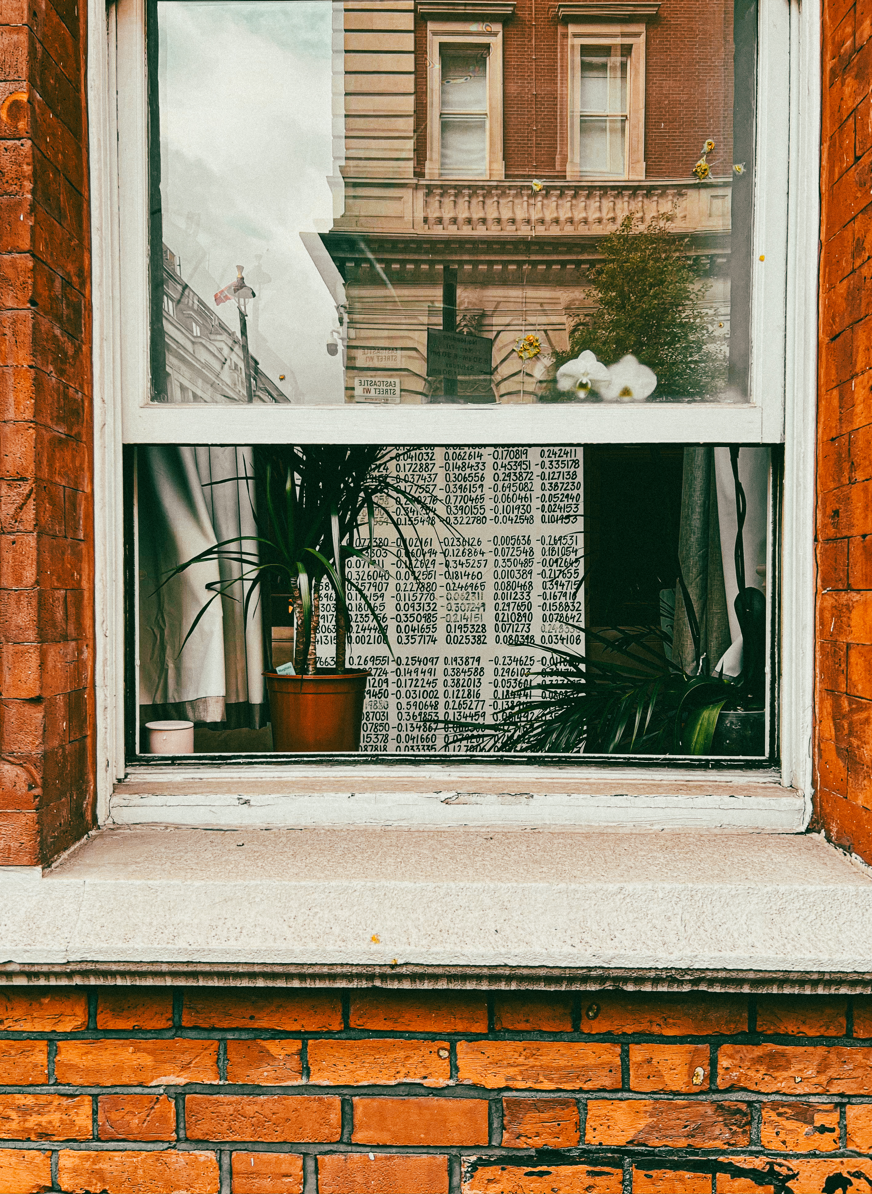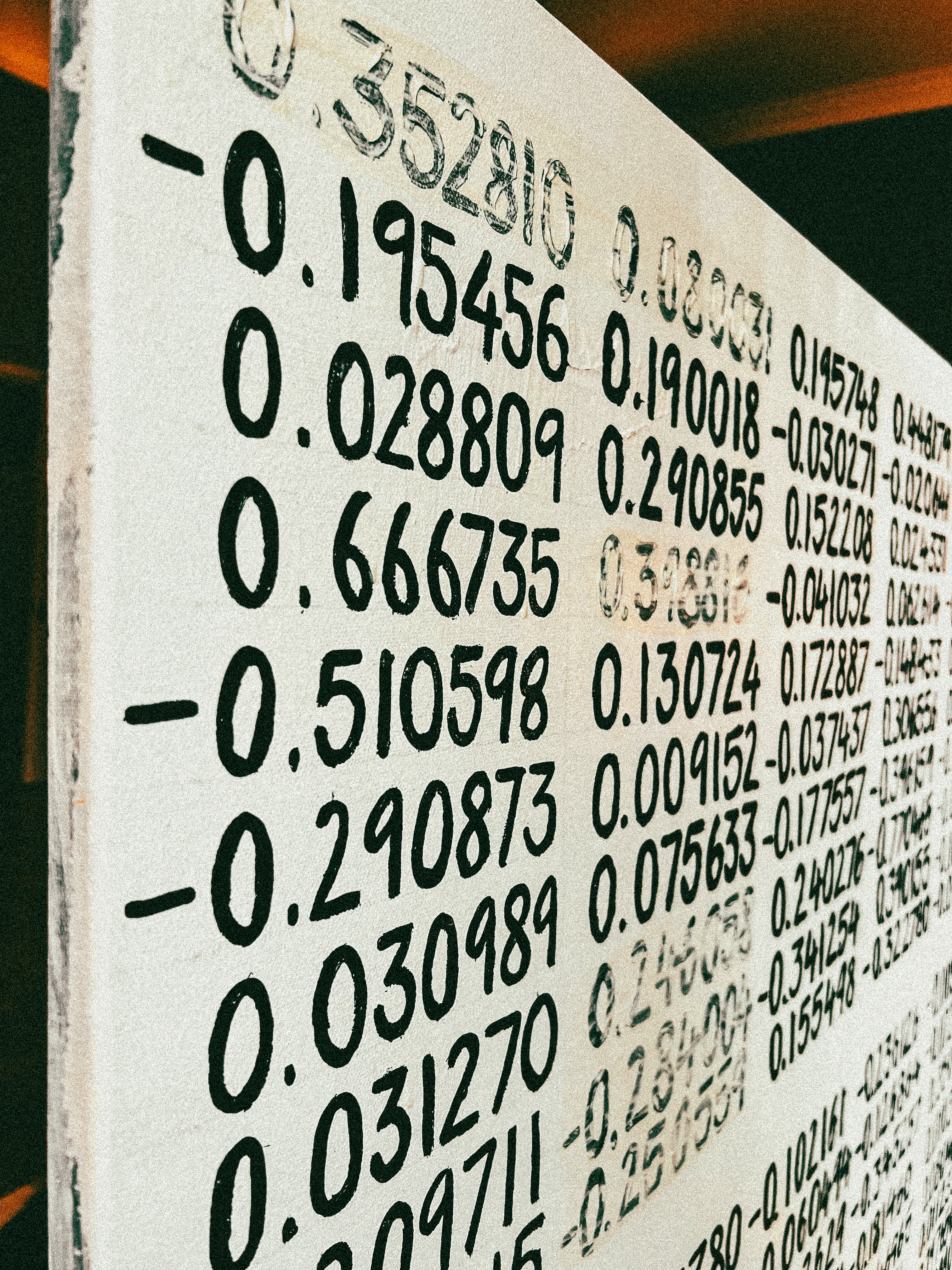 That line revealed a secret, and I wanted to see it. So I painted the numbers, “model weights,” the mathematical DNA of large language models. Each mark is a tiny coefficient: meaningless alone, miraculous in concert. From a distance the piece reads as a soft colour field; step closer and the neat rows of numbers come into focus, revealing the math behind the magic.